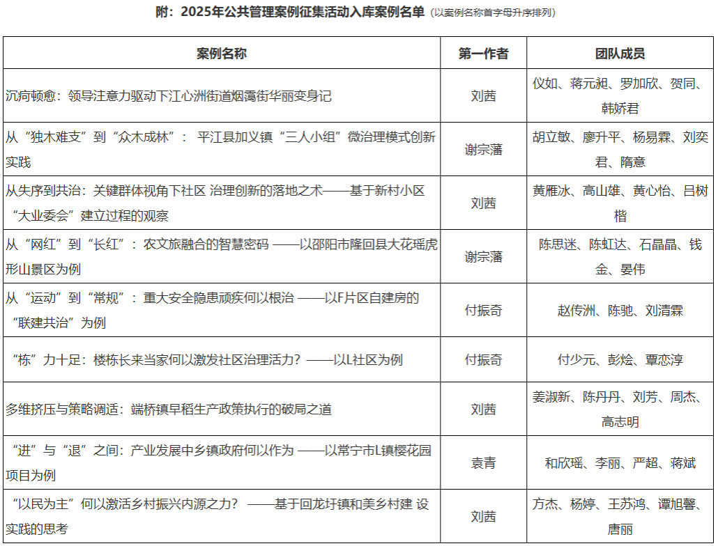 近日,全国MPA教育指导委员会公布2025年中国专业学位案例中心公共管理案例库入选名单,政治与公共管理学院MPA中心共有9篇案例成功入选,成绩斐然